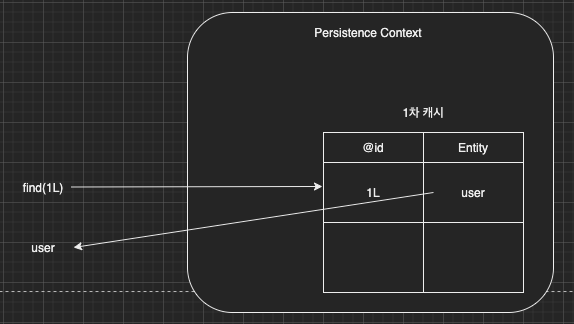 Entity를 조회하면 DB에 조회하기 전에 1차 캐시를 확인하고 결과가 있으면 캐시의 내용을 응답한다.