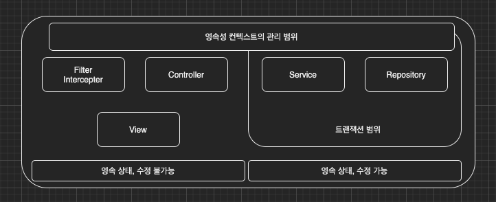 이렇게 Controller와 View에서도 지연 로딩이 가능하기 위해서는 영속성 컨텍스트가 계속 살아있어야하고