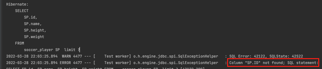 존재하지 않는 컬럼인 ID를 찾으면서 발생한 오류이다.