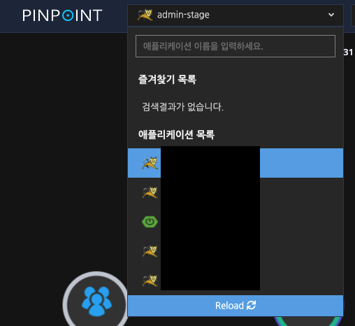 Pinpoint Web에 접속해보면 연동한 어플리케이션이 목록에 표시가 된다.