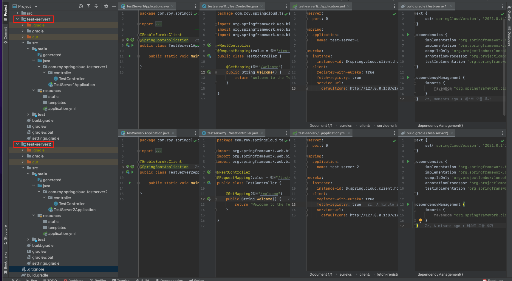 테스트 모듈은 test-server1과 test-server2가 있다.