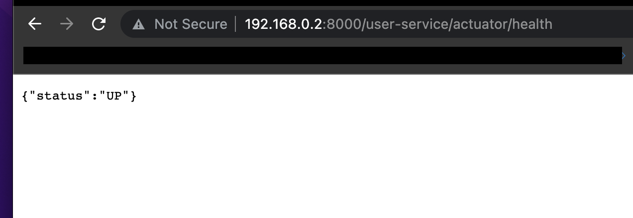 192.168.0.2:8000/user-service/actuator/health 에 접속하여 정상적으로 애플리케이션의 상태가 출력되는지 확인해본다.