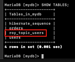 roy_topic_users에 데이터가 정상적으로 Insert되었는지 확인해본다.