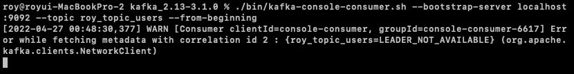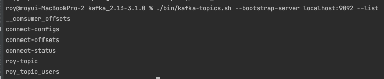 $ ./bin/kafka-console-consumer.sh --bootstrap-server localhost:9092 --topic roy_topic_users --from-beginning