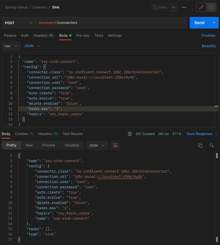- POST /connectors API 호출