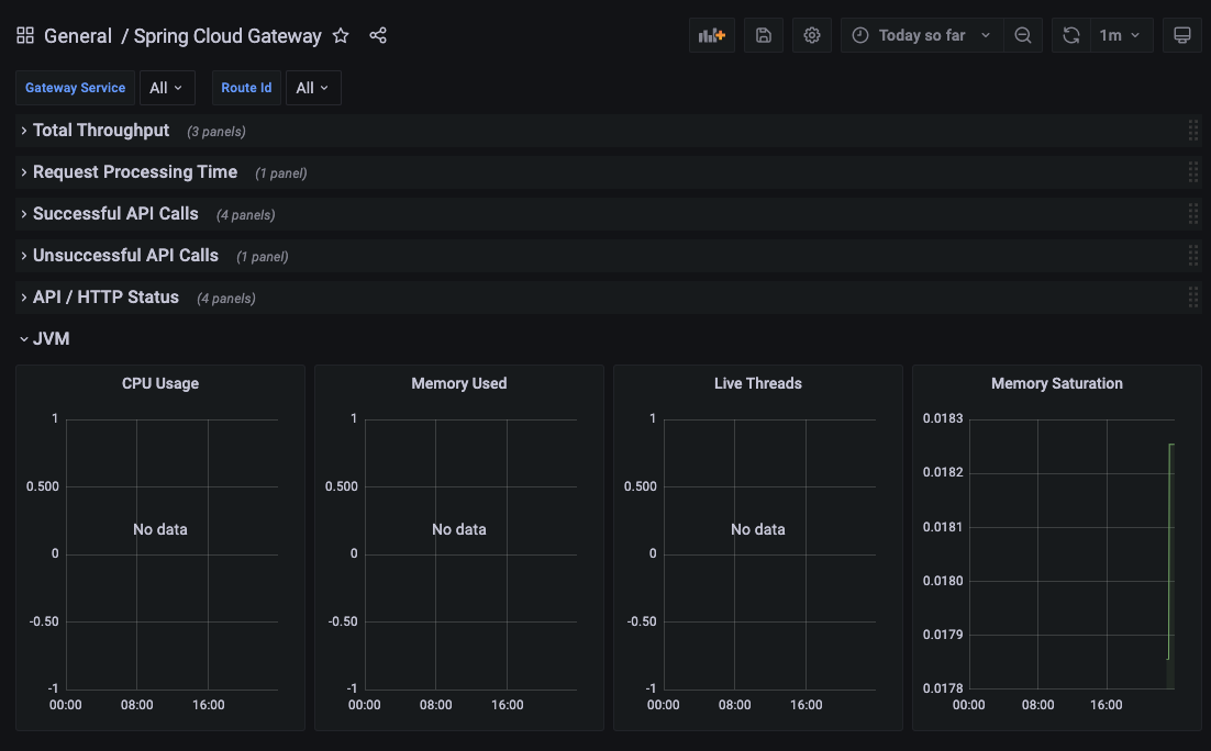 우리는 Grafana에 JVM(Micrometer), Prometheus, Spring Cloud Gateway 세 개의 Dashboard를 추가할 것이다.JVM(Micrometer) 부터 하나씩 추가해보도록 한다.