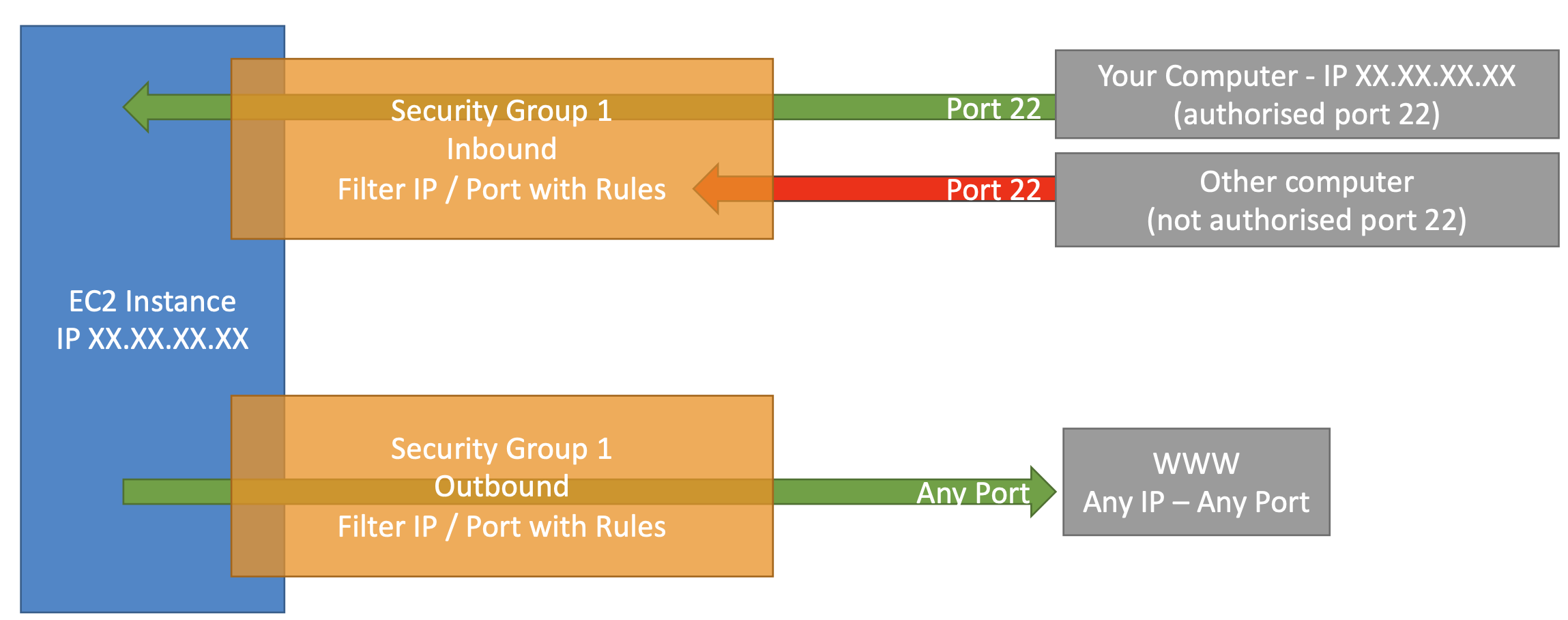 - SSH 액세스를 위해 하나의 별도 보안 그룹을 유지하는 것이 좋다.