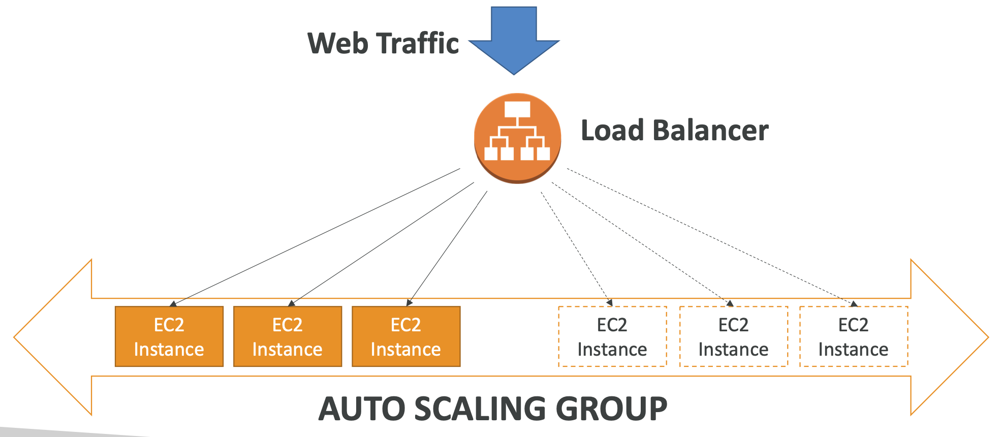 - ASG 아래에 인스턴스가 있다는 것은 어떤 이유로든 인스턴스가 종료되는 경우 ASG가 자동으로 새 인스턴스를 교체용으로 생성한다는 것을 의미한다.