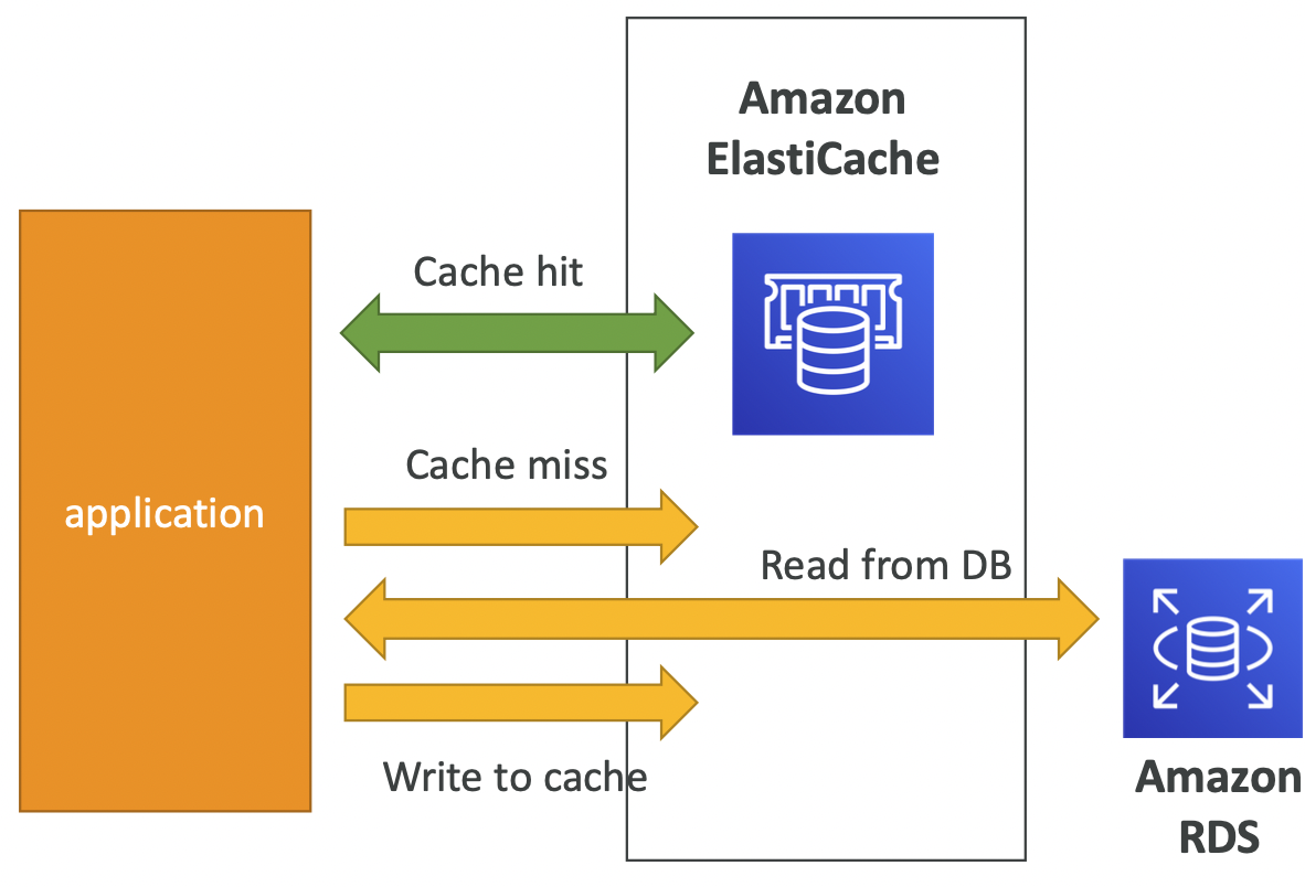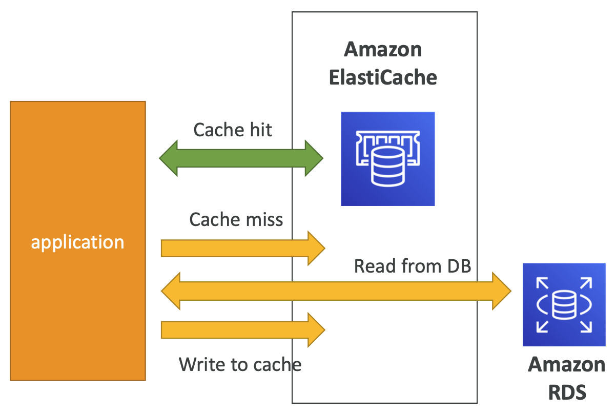 - 애플리케이션은 ElastiCache를 쿼리하며 사용할 수 없는 경우 RDS에서 가져와 ElastiCache에 저장한다.