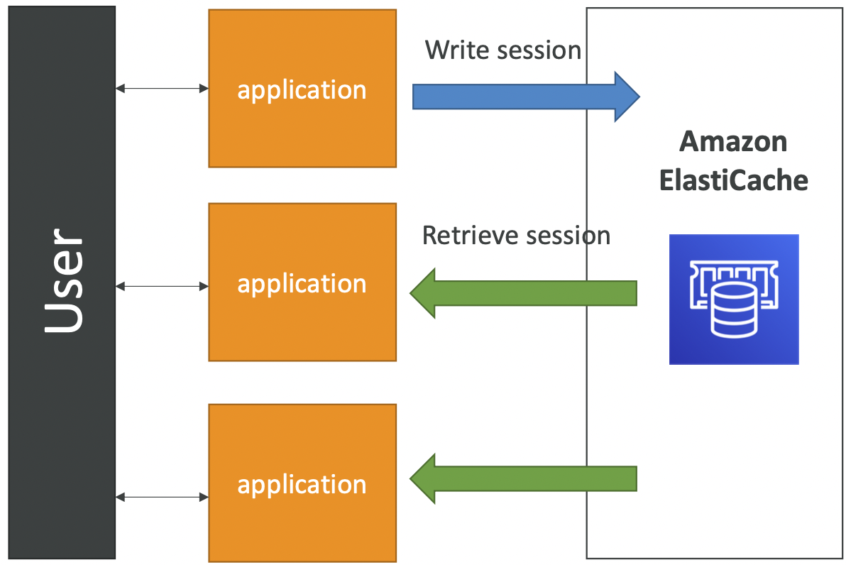 - 애플리케이션은 ElastiCache에 세션 데이터를 저장한다.