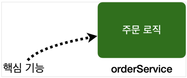 OrderService의 핵심 기능은 주문 로직이다. - 부가 기능: 핵심 기능을 보조하기 위해 제공되는 기능이며, 대표적으로 "로그 추적 로직", "트랜잭션"과 같은 기능이 있다.