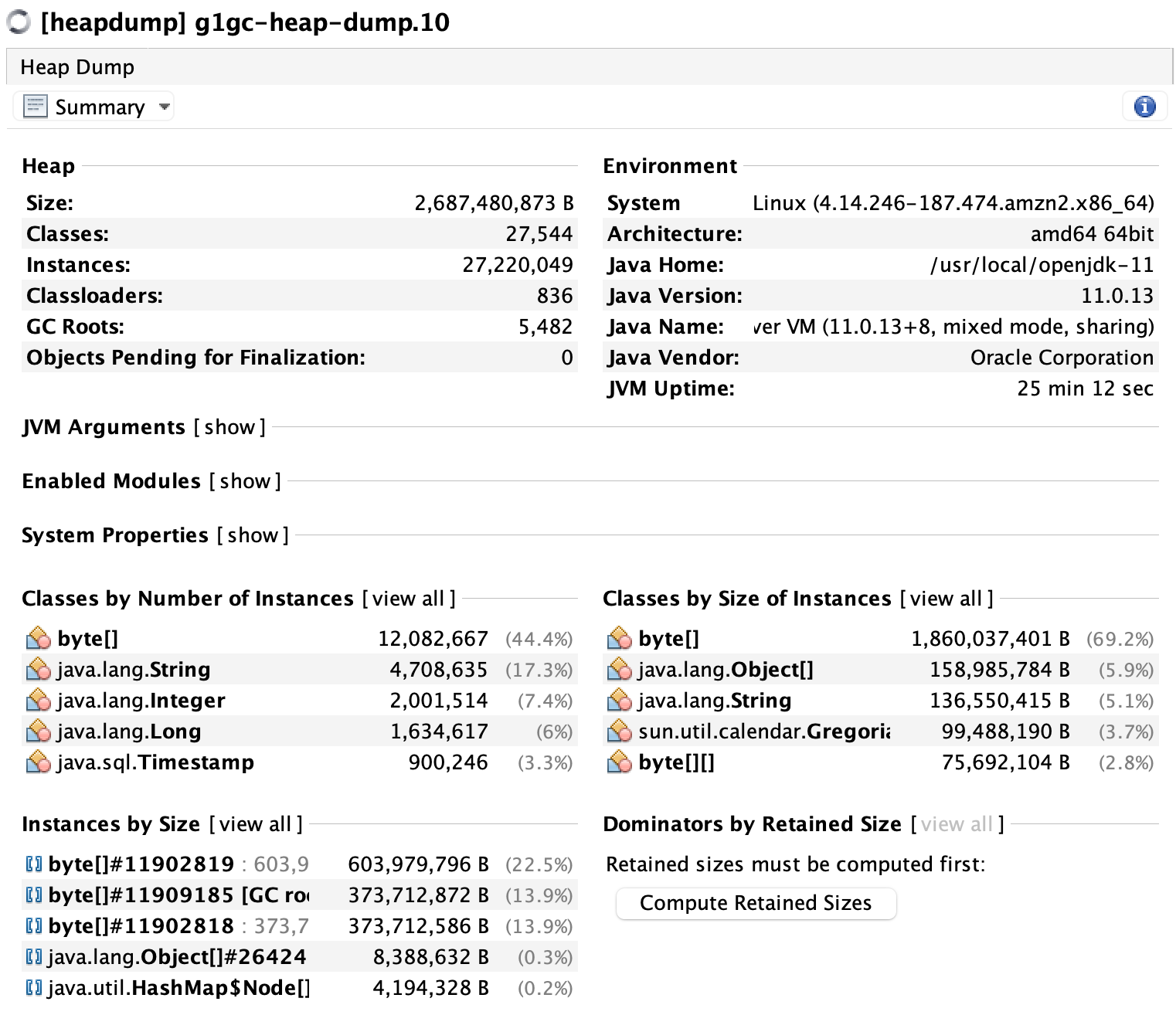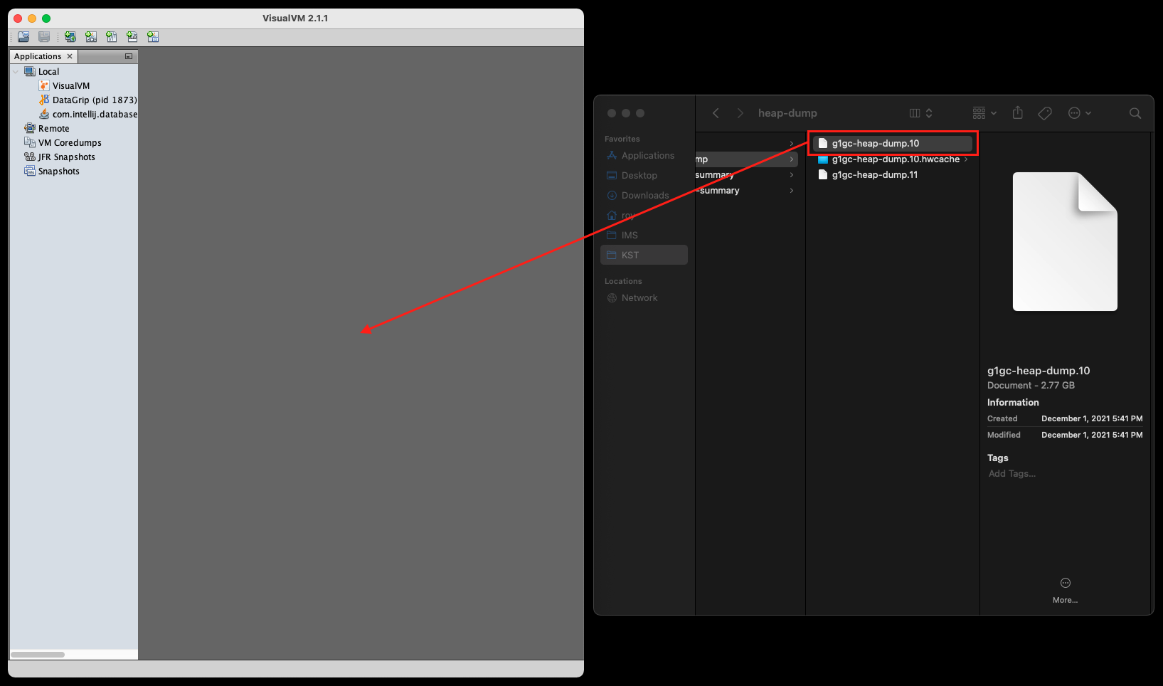 Dump 추출 방법은 A GCs와 B GCs가 달랐지만 분석 방법은 동일하다. (예시는 G1GC의 Dump 파일로 진행)