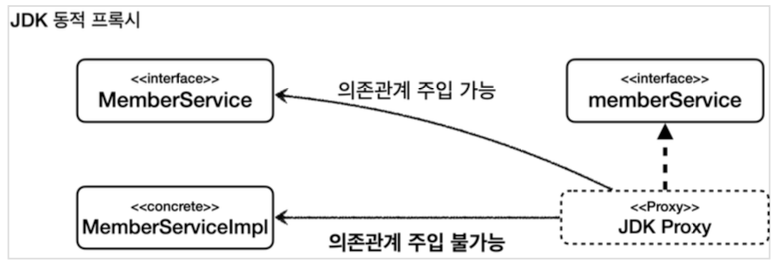 JDK 동적 프록시는 대상 객체인 MemberServiceImpl 타입에 의존관계를 주입할 수 없다.