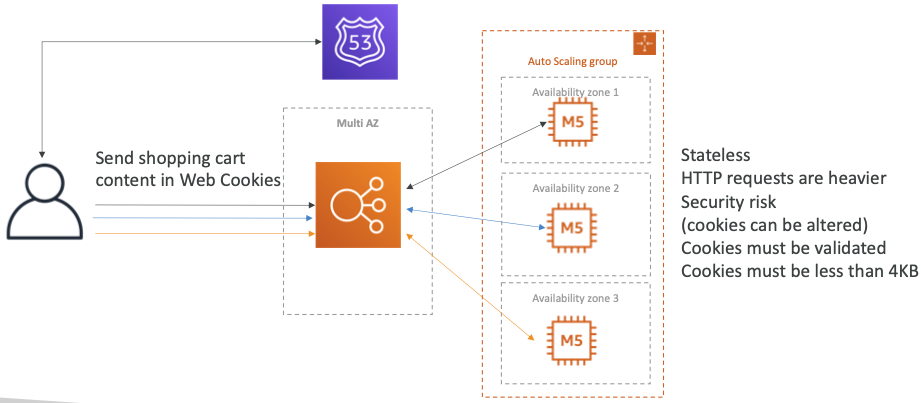MyClothes.com애플리케이션의 “3-Tier” 아키텍처에 대해 논의한 내용은 아래와 같다.- ELB Sticky Session (고정 세션)