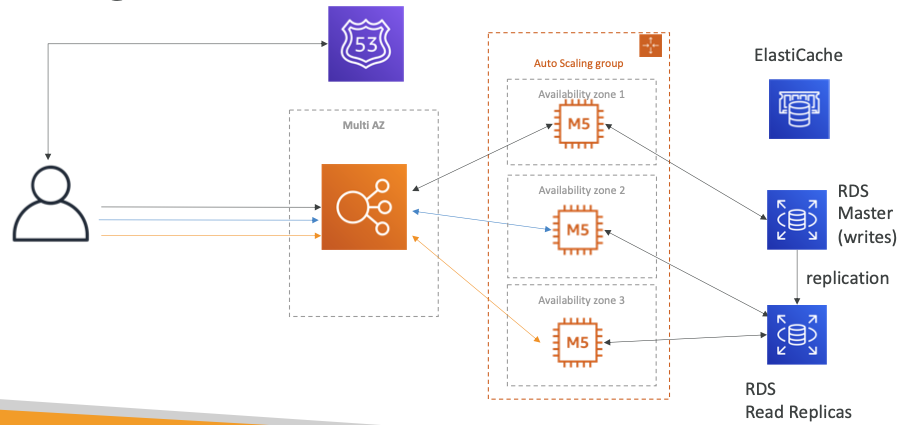 - 만약, RDS 읽기 전용 복제본을 만들 수 없는 상황이라면 캐시를 사용하여 DB의 부하를 줄일 수 있다.