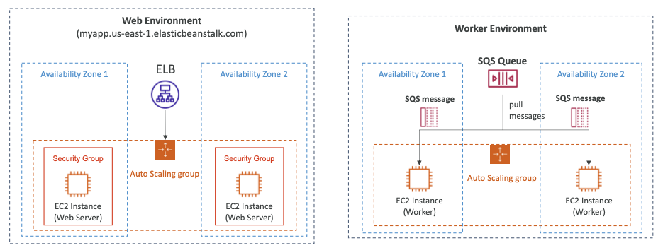 - “Worker Environment”의 경우 SQS 메시지 수에 따라 확장 가능하다.