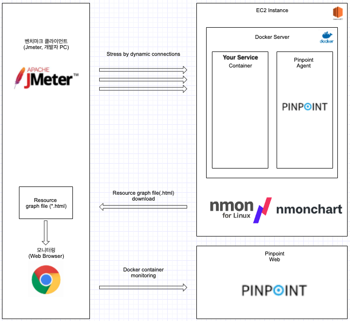 - 부하 테스트 환경을 간략하게 그려보면 아래와 같다.