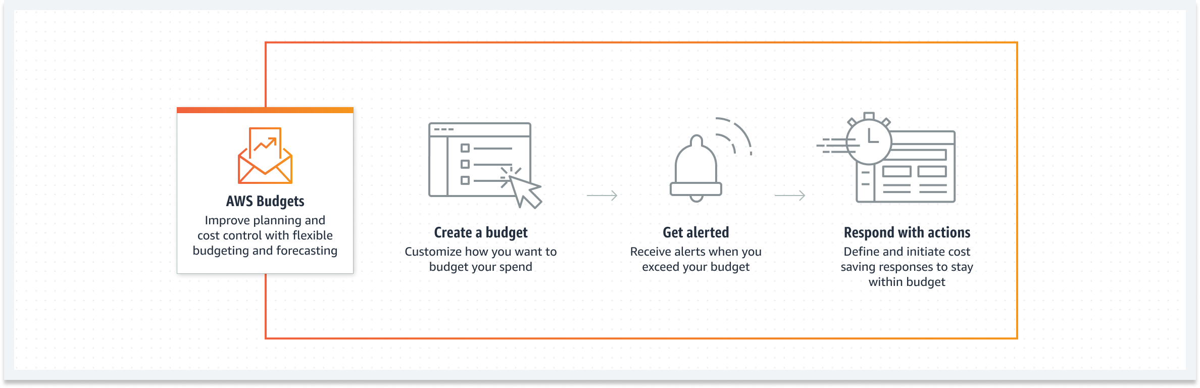 - AWS Budgets를 사용하면 사용자 지정 예산을 설정하여 비용 및 사용량을 추적하고, 임계값 초과 시 이메일 또는 SNS 알림에서 수신된 알림에 빠르게 대응할 수 있다.