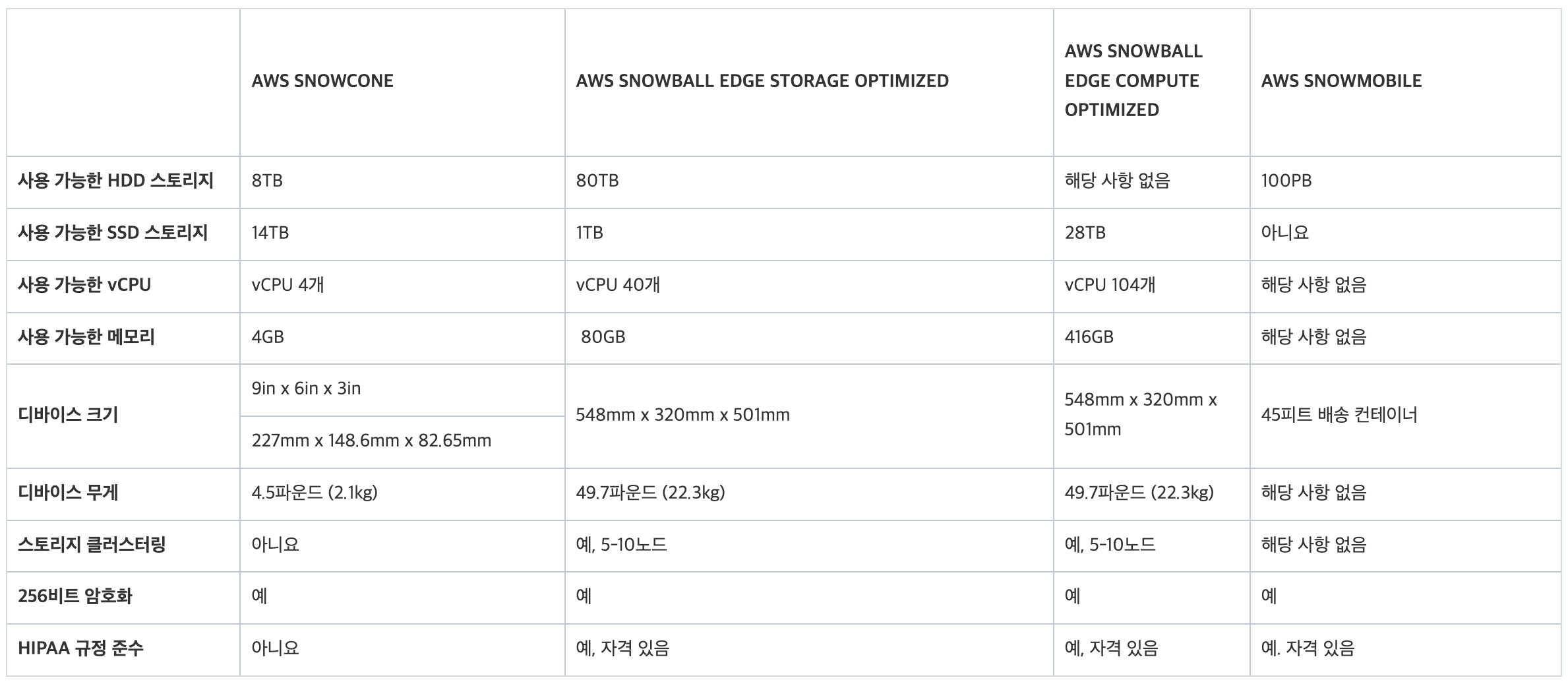 - 페타바이트급 데이터를 AWS로 이전하거나 엣지에서 데이터를 처리