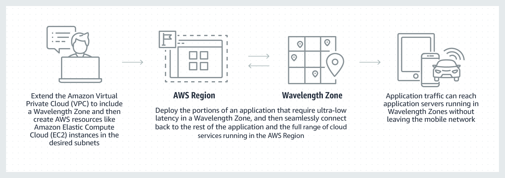 - 애플리케이션을 한 번 개발하고 전 세계 5G 네트워크에서 다중 Wavelength Zone에 배포를 확장한다.