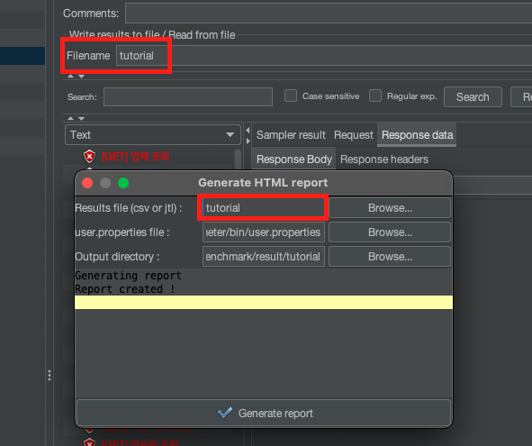 - Result file: View Results Tree에서 명시해두었던 파일명을 적어준다.