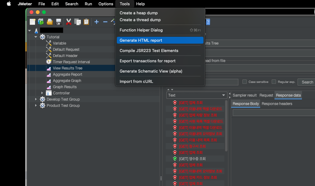 Tutorial Test Group을 사용하여 서버에 요청을 보내보고 결과를 확인해본다.