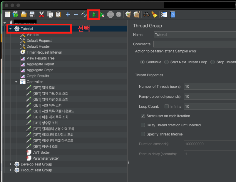 - Tutorial: Jmeter와 친숙해지기 위해 작성한 Test Group