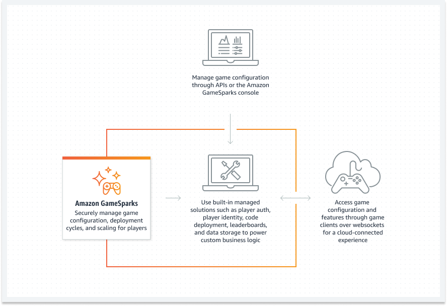- Amazon GameSparks는 게임 백엔드 기능을 손쉽게 구축, 최적화 및 조정할 수 있는 완전관리형 게임 백엔드 서비스다.