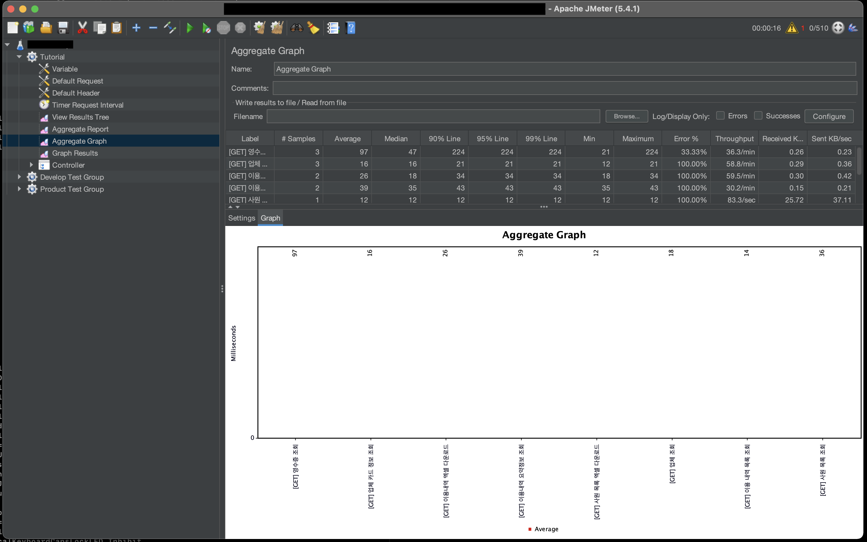 - Aggregate Graph: Aggregate Report의 결과를 그래프로 확인할 수 있도록 보여준다.