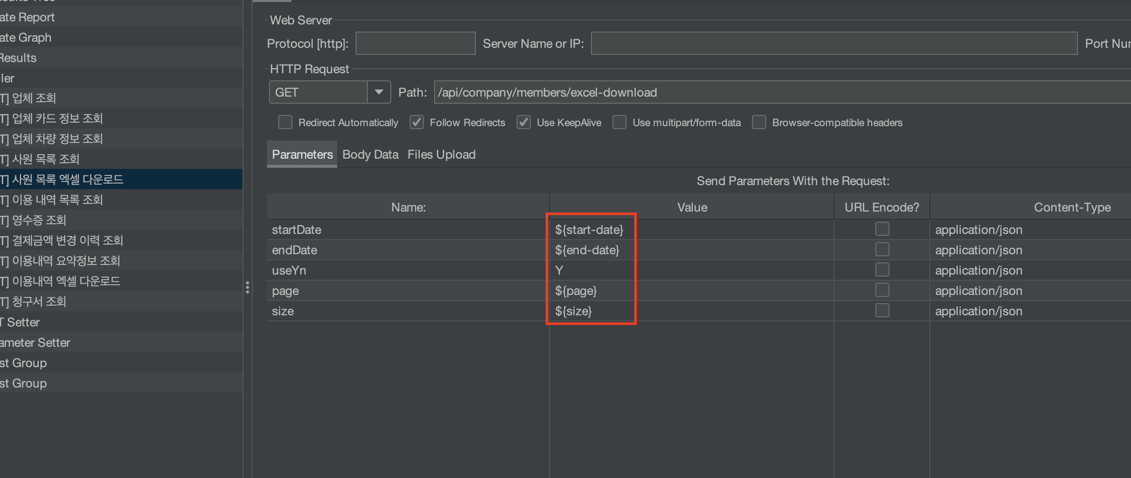 - Parameter Setter: 모든 요청 전에 작동하여 Parameter를 랜덤한 값으로 수정한다. 작성일 기준으로 pageable 정보, 기간 정보, 배차 아이디 정보를 랜덤하게 생성하여 요청마다 다른 결과를 받아볼 수 있도록 구현하였다.