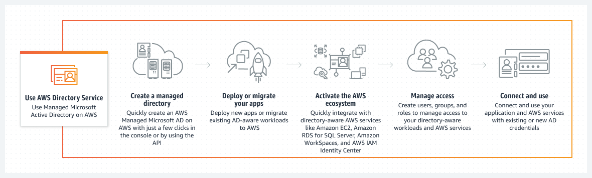 통합된 애플리케이션은 애플리케이션 내에서 리소스를 공유하고 협업할 수 있도록 동일한 사용자 및 그룹 보기를 공유한다. - Amazon EC2 Windows 인스턴스에 대한 Single Sign-On 액세스 지원: 기존 회사 사용자 이름, 암호 및 MFA 디바이스를 사용하여 Amazon EC2 Windows 인스턴스에 안전하게 액세스할 수 있다.