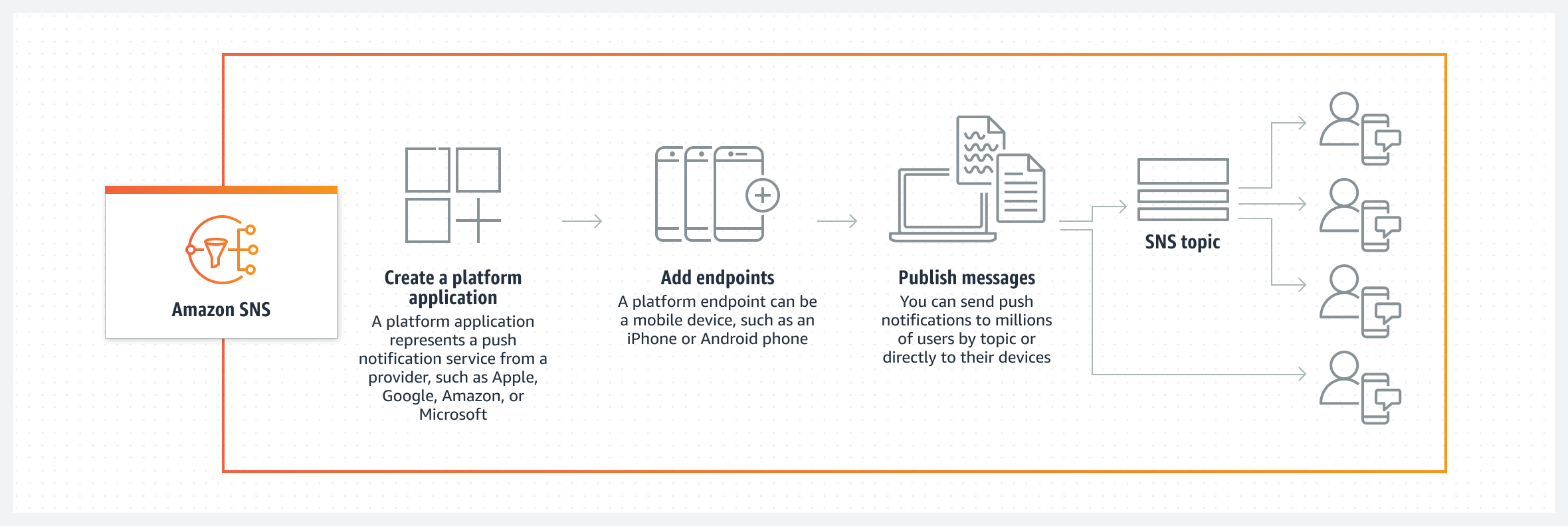- pub/sub, SMS, 이메일 및 모바일 푸시 알림