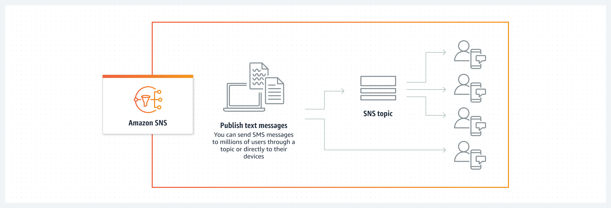 - SMS 문자, 푸시 알림, 이메일을 통해 고객에게 A2P(application-to-person) 알림을 배포할 수 있다.