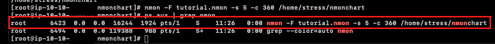 $ nmon -F tutorial.nmon -s 5 -c 360 /home/stress/nmonchart