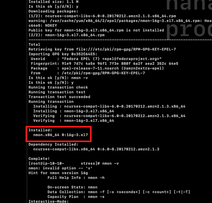 Installed: nmon.* 가 표시된다면 정상적으로 설치가 완료된 것이다.