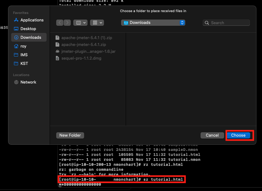 Instance에 있는 기록파일을 개발자의 브라우저로 옮겨야한다. 여러가지 방법이 존재하지만 필자는 Iterm2와 zmodem을 사용하여 파일을 옮길 예정이다. 혹시라도 Instance의 파일을 자신의 PC로 옮길 준비가 되어 있지 않다면 여기(링크)의 문서를 확인하고 세팅을 완료해두도록 한다. 서버쪽 설정은 필자와 함께 살펴볼 예정이니 자신의 PC만 설정을 완료하면 된다.