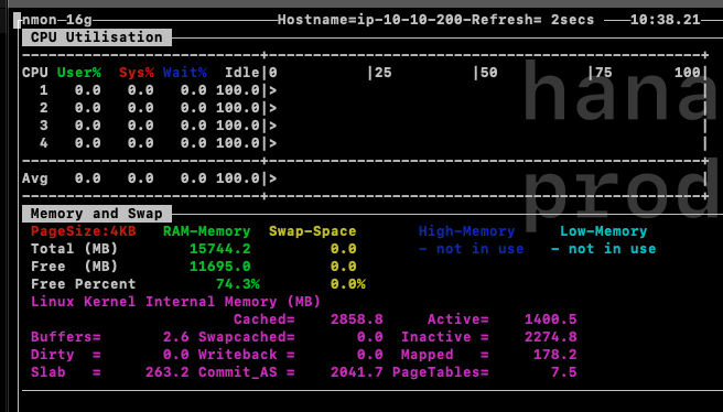 아래의 이미지와 같이 nmon이 실행되었다면 원하는 리소스를 찾아서 눌러보도록 한다.