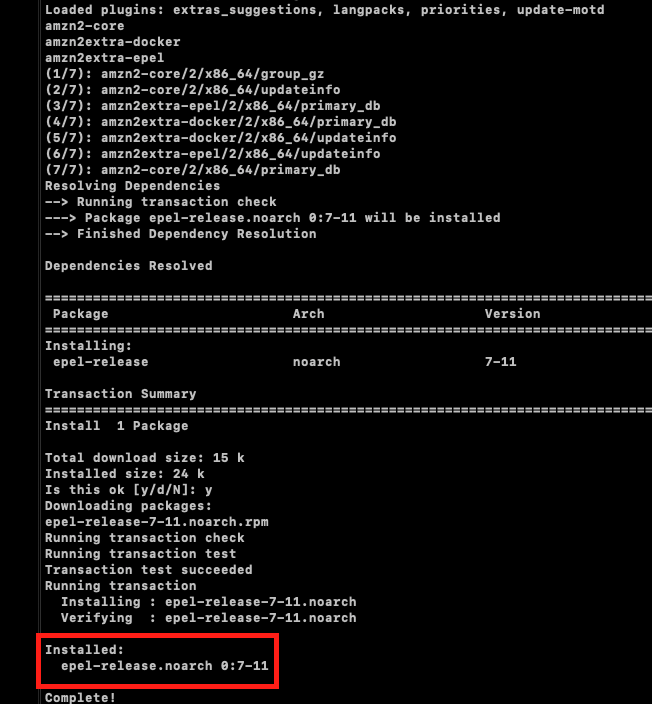 $ sudo amazon-linux-extras install epel