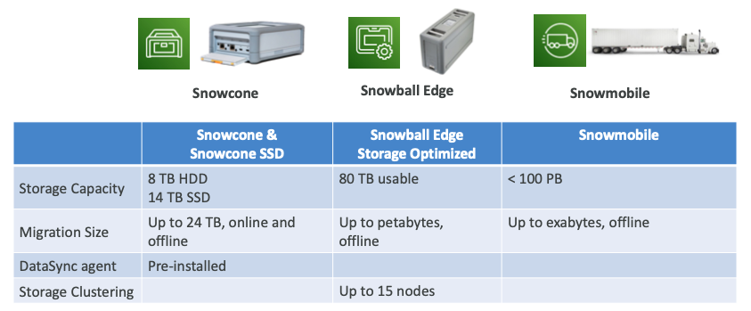 - 오프라인으로 AWS로 데이터를 전송하거나 인터넷 및 AWS DataSync를 사용하여 데이터를 전송할 수 있다.