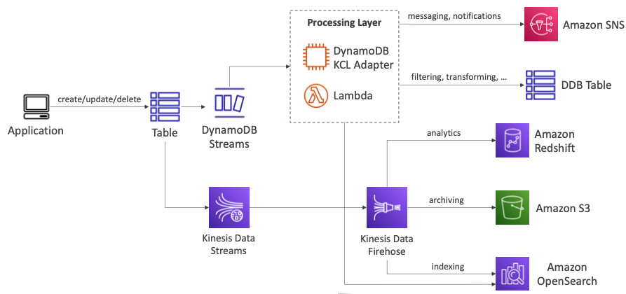 - AWS Lambda 트리거 또는 DynamoDB Stream Kinesis 어댑터를 사용한 프로세스