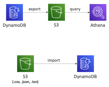 - CSV, DynamoDB JSON, ION 형식으로 데이터를 가져올 수 있다.