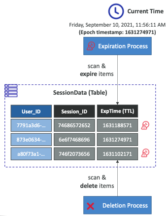 - 만료 타임스탬프 이후 항목을 자동으로 삭제한다.