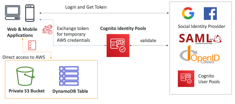 - Federated Identities: 페이스북, 구글, SAML의 사용자