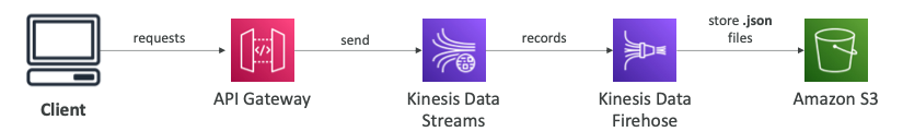 - 아래와 같이 API Gateway와 Kineses 및 S3를 통합할 수 있다.