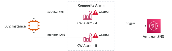 - 복합 알람(Composite Alarms)은 여러 개의 다른 알람의 상태를 모니터링한다.