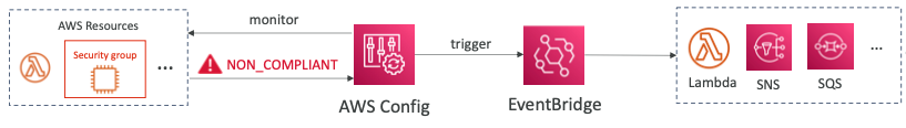 - AWS 리소스가 규정을 준수하지 않을 경우, "EventBridge"를 사용하여 알림을 트리거할 수 있다.