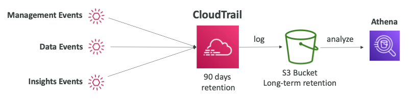 - 이벤트를 이 기간 이후로 유지하려면 "S3"에 기록하고 "Athena"를 사용해야 한다.