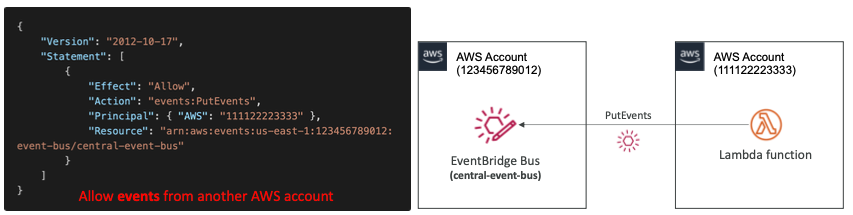 - 다른 AWS 계정에서 리소스 기반 정책을 사용하여 이벤트 버스에 액세스할 수 있다.