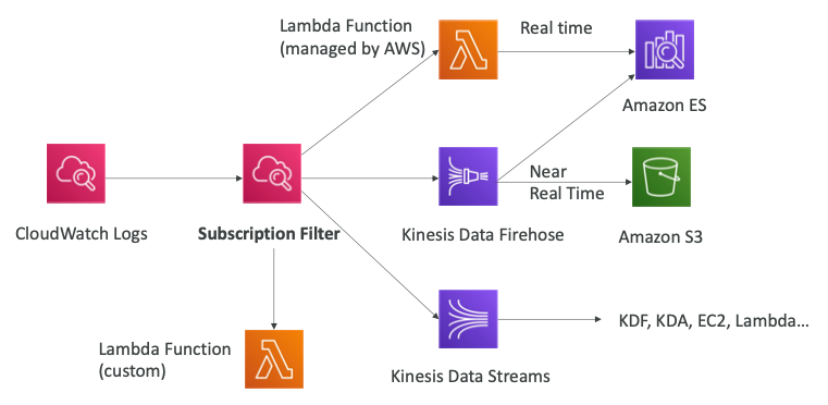- CloudWatch Logs는 아래와 같은 목적지로 로그를 전송할 수 있다.