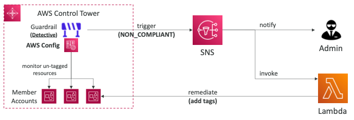 - 검출(Detective) 가드레일 - AWS Config를 사용한다. (예: 태그가 지정되지 않은 리소스 식별)